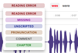 Categorize proofing results as “Reading Error,” “Pronunciation,” or “Comment”