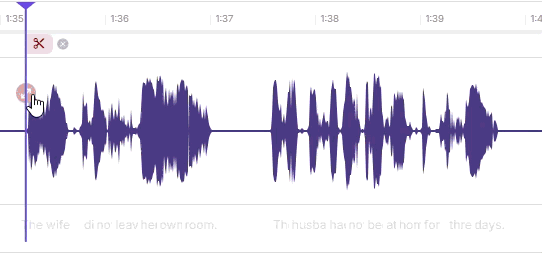 By clicking on the arrows on a cut, you can expand and see the audio fragemnts that have been taken out either by Narrafix or an human editor. Listen back or modify them or restore them by simply clicking on the "x" next to the Cut-marker flag.