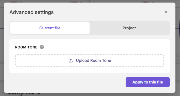 ⚠️ Important note: If you add a room tone file for the entire project, it will overwrite any room tone files already assigned to individual files.